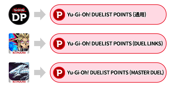 *Yu-Gi-Oh! DUELIST POINT包含不同类型。通过Yu-Gi-Oh! DUELIST POINT Official Website任务等累积的积分称为“Yu-Gi-Oh! DUELIST POINT(通用)”,通过对应应用程序任务获得的Yu-Gi-Oh! DUELIST POINT则会按名称分别累积。例如,在《Yu-Gi-Oh! MASTER DUEL》中累积的积分将以“Yu-Gi-Oh! DUELIST POINT(MASTER DUEL)”这一名称进行累积。
